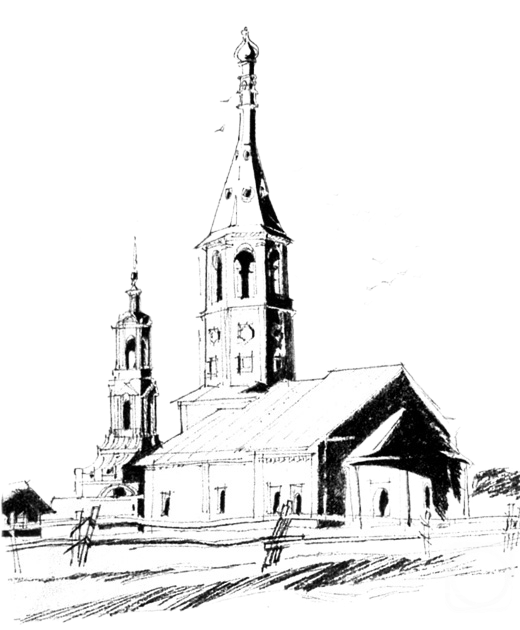 Следует отдать должное тактичности строителей колокольни, которые не только отвели ее от церковной стены под прямым углом, но и подчинили храму необходимость ее присутствия, намеренно занизив высоту