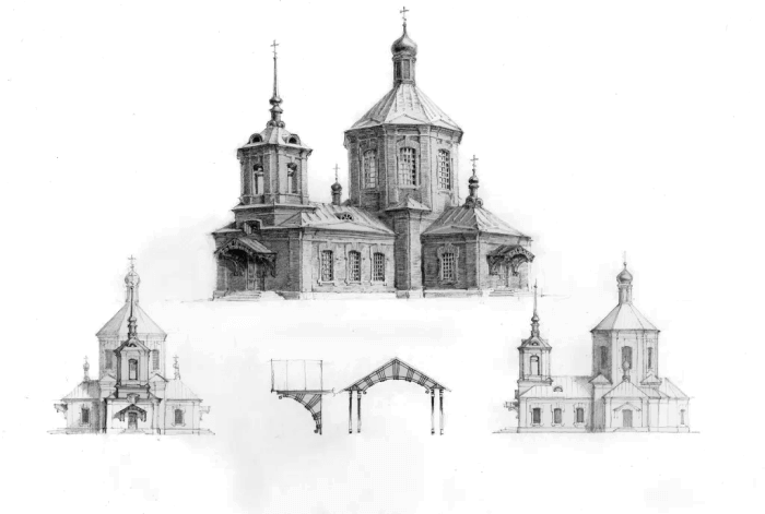 Комбинация неповторяющихся фасадных элементов, разных по стилевой ориентации и форме, привела к созданию декоративной композиции, не встречающихся больше ни на одном из памятников устюжского барокко. Эта