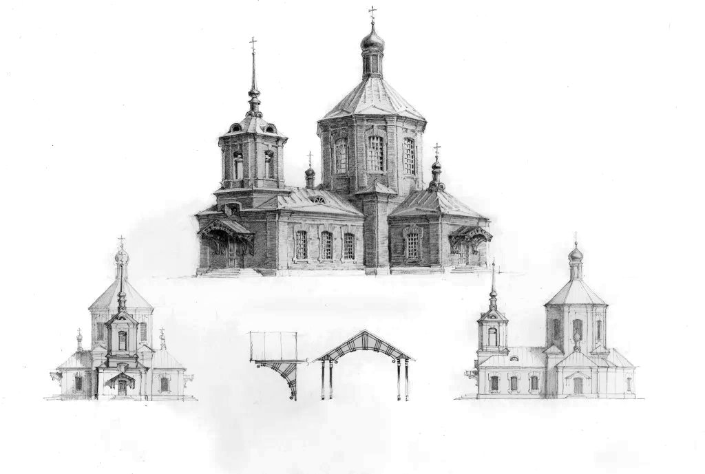 с раковинами да сверх еще сего в алтаре, в церкви и в паперти в каждом окошке и во дверях попеременно в кружалах Святого духа да херувима / и вышеозначенным письмом ни в чем нам, Протопопову и Попову, не